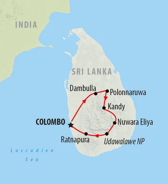 Uncover the magic of Sri Lanka on this 8-day adventure, starting and ending in Colombo. Step back in time at the cave temples of Dambulla and the ancient city of Polonnaruwa. Climb the striking Sigiriya Rock Fortress and enjoy a village-style cookery demo in Kayanwala. In Kandy, visit the revered Temple of the Tooth and a local tea factory before a scenic train journey winds through lush plantations to Nuwara Eliya. Spot elephants and other wildlife on safari in Udawalawe National Park, then round off the trip with a lively tour of Colombo’s colonial landmarks and colourful city streets.