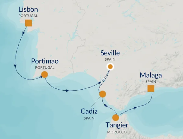 Discover the rich cultures, flavours and history of Southern Europe and North Africa on this immersive 7-night voyage from Lisbon to Málaga. Enjoy extended stays and overnight ports that allow deeper exploration of iconic destinations, including Seville, Cádiz and Tangier. With Azamara’s small-ship experience, inclusive onboard dining and beverages, and unhurried time ashore, this journey is designed for travellers who want to experience destinations beyond the surface — day and night.