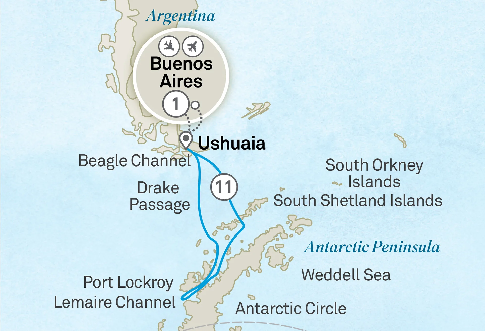 Your voyage ends this morning as you farewell the crew. Disembark after breakfast to fly to Buenos Aires, taking away memories of a truly unforgettable experience.