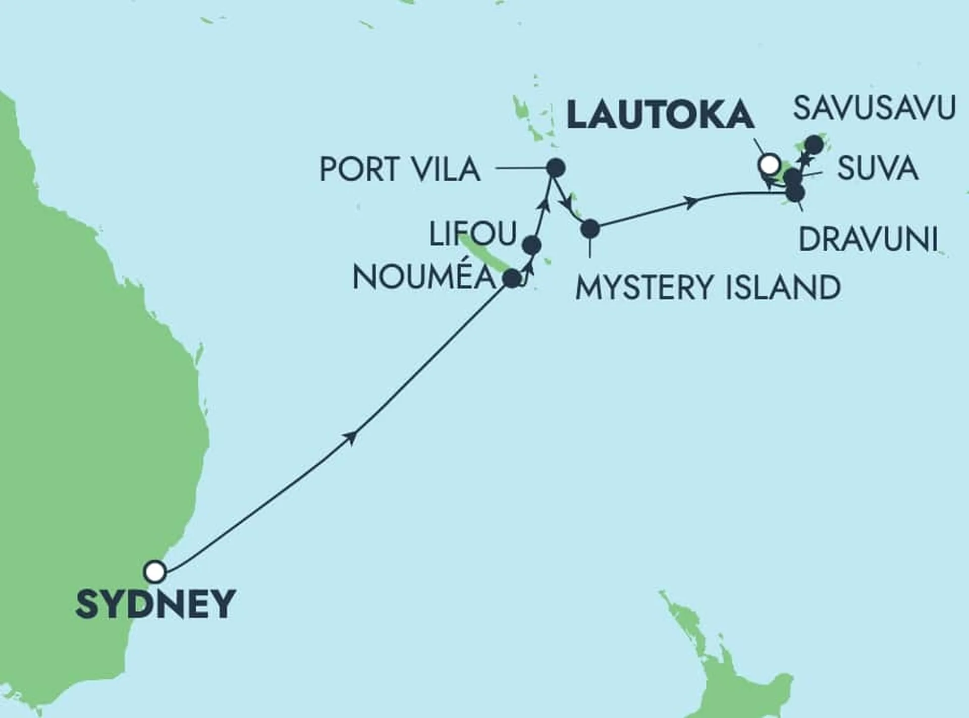 Vibrant cultures and breathtaking landscapes-it's all yours to discover on this enchanting 11-day sail through the South Pacific. In Noumea, bask in the beauty of Amedee Island, a marine reserve where you can snorkel amidst colourful coral reefs and indulge in a traditional island buffet. Next, the charm of Easo Village in Lifou beckons. Immerse yourself in the serene paradise of Mystery Island in Vanuatu, where pristine beaches meet captivating cultural performances. Finally, in Savusavu, Fiji, luxuriate in natural hot springs and explore lush rainforests on an exhilarating eco-tour.