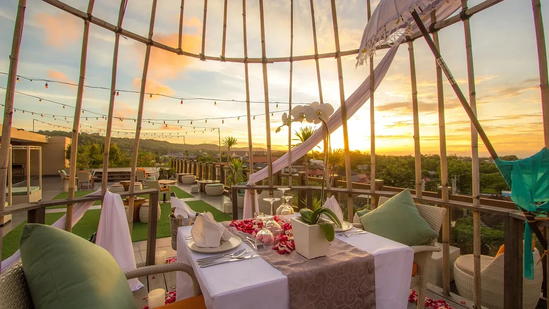 Relax from your upgraded private pool villa nestled between the beach and the hills of Jimbaran, home to golden beaches, sunsets and a laid-back atmosphere. Enjoy traditional and international favourites at Sattvic Restaurant, or sit back with a cocktail and some light tapas while taking in the tropical views from Cilantro Rooftop Bar & Lounge. For complete relaxation, choose from a menu of treatments available at Thyme Spa, or take advantage of regular cooking and sunset yoga classes hosted by the resort. Shuttles to local beaches run regularly, allowing you to explore the surrounding area whenever you’re not taking in all that the resort has to offer.