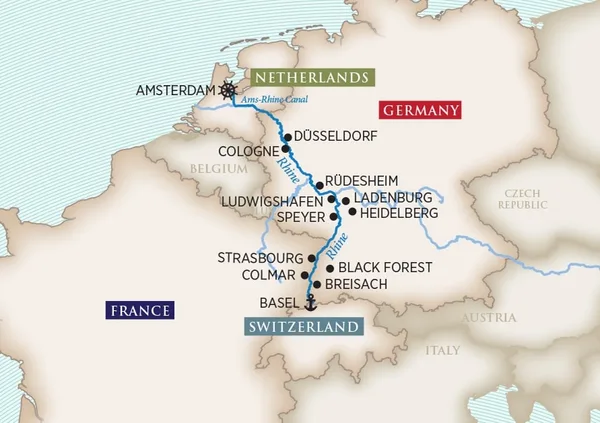 Board the ship in Amsterdam for your Captivating Rhine cruise.