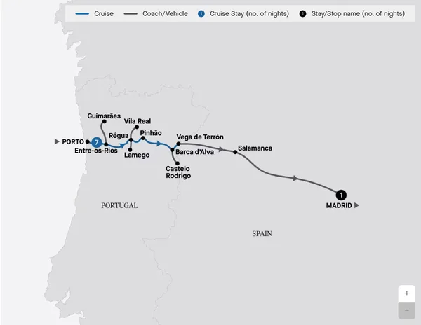Begin your journey in the vibrant Spanish capital of Madrid before embarking on a seven-night cruise along the Douro River aboard the MS Estrela. Discover the highlights of Portugal's Douro Valley as you explore medieval towns and sample local fare. Visit Palácio da Bolsa and experience a wine tasting at Quinta da Aveleda.