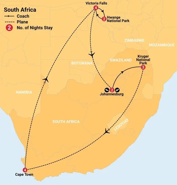 This itinerary offers the perfect balance of adventure and discovery. From Kruger’s abundant wildlife to Cape Town’s vibrant culture, Hwange’s stunning landscapes with diverse game drives, and the breathtaking Victoria Falls, every destination offers unforgettable experiences, guided by local experts, ensuring a truly enriching journey.