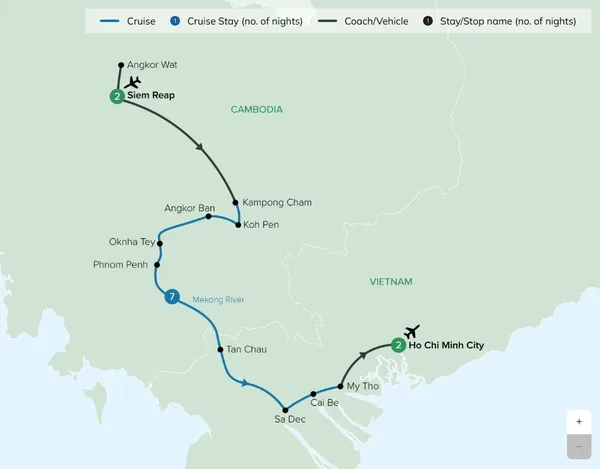 Travel along the tributaries around Tan Chau by a small boat, then go ashore for a rickshaw tour. Weave through rambling laneways past shops and friendly locals and visit local silk and rattan weaving workshops. Later, step back in time during a visit to Vinh Hoa, also known as Evergreen Island. Take the opportunity to witness traditional Vietnamese farming, then head back to the ship and continue cruising towards the quaint town of Sa Dec.