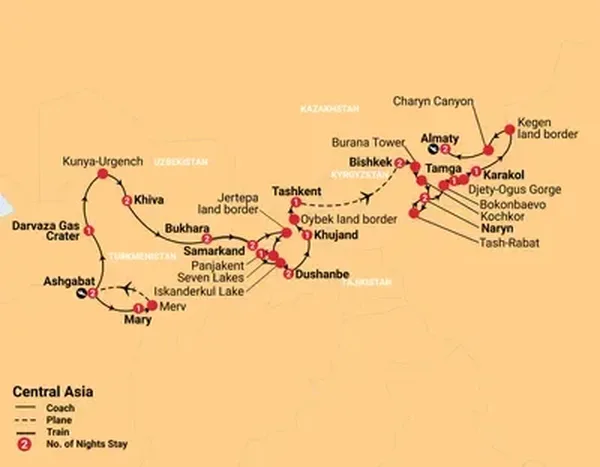 - Explore the heart of Central Asia. Discover ancient cities like Mary and Merv, stunning landscapes, UNESCO sites, and vibrant cultures across Turkmenistan, Uzbekistan, Tajikistan, Kyrgyzstan, and Kazakhstan.