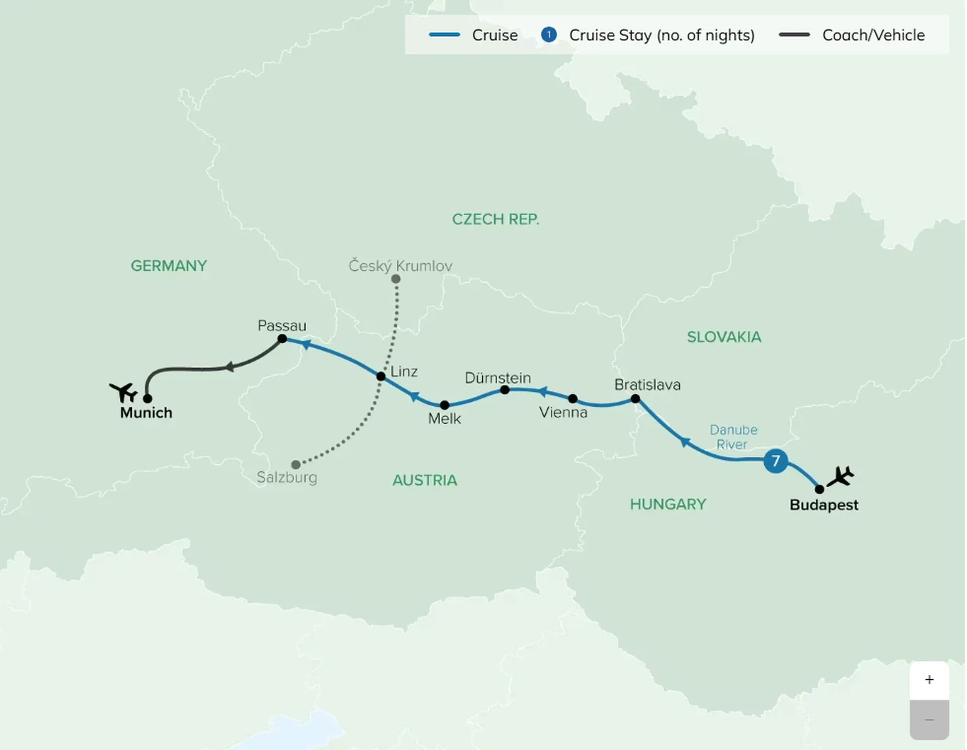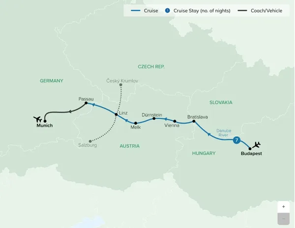 Today, choose to join an optional tour to Český Krumlov in the Czech Republic or visit Salzburg. Alternatively, enjoy time at leisure in Linz, with the freedom to explore at your own pace.