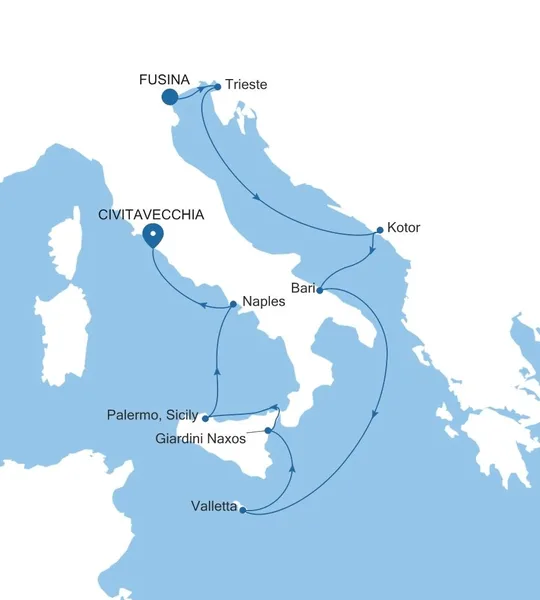 Slowly circumnavigate the Italian peninsula on an exploration of the finer things in life. Let your heart soar in Venice before crossing the sparkling Adriatic to the elegant city of Trieste and the tucked-away gem of Kotor. Cross back to Puglia to explore Bari’s labyrinthine-like old town before sailing for Malta and Sicily’s rustic, sun-faded charm. Few cities are as energetic and flavor packed as Naples—dig in before rendezvousing with Rome.