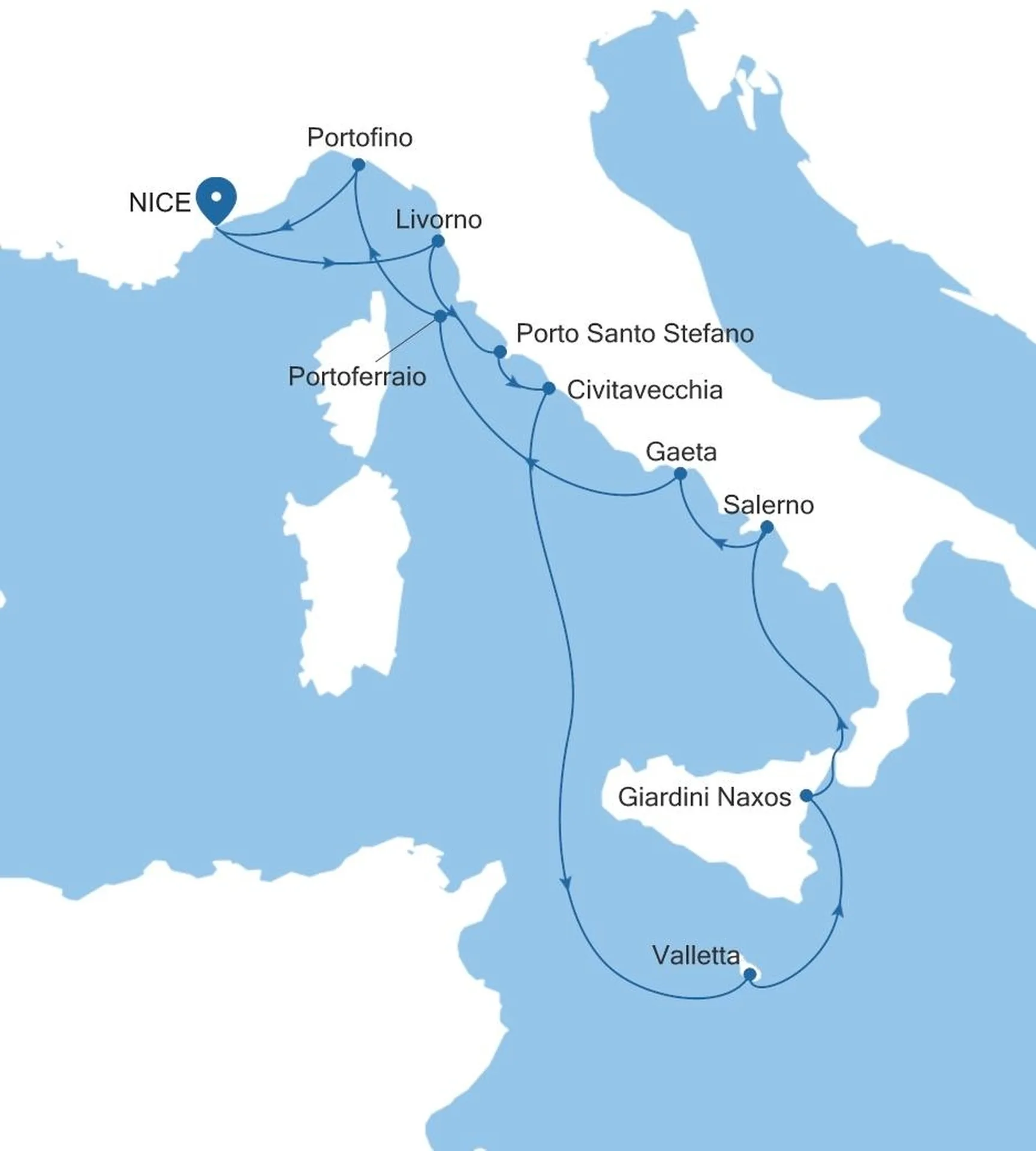 Experience the culture and beauty of France and Italy, stepping onto storied islands like Malta and Sicily, as we loop the Med from Nice’s wide, palm-lined promenade. An overnight in Tuscany reveals rolling hills and Renaissance treasures. Soak it in as we continue through historic streets, swim in crystal-clear waters, and savor fresh seafood. We’ll visit islands of dazzling coastal scenery, each imbued with history—like Elba, where Napoleon was famously exiled.