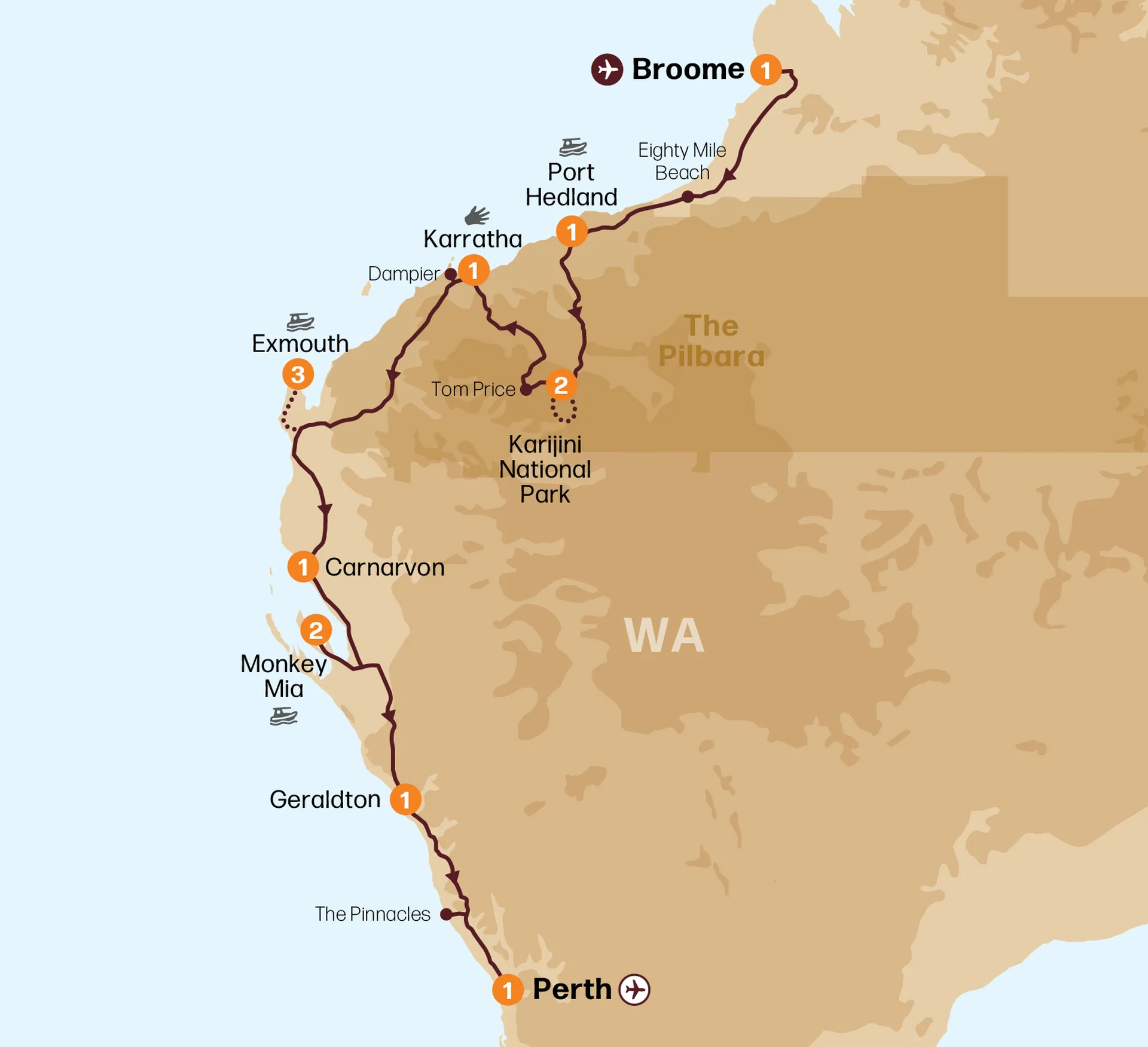 Journey from Broome to Perth via the Pilbara & Coral Coast