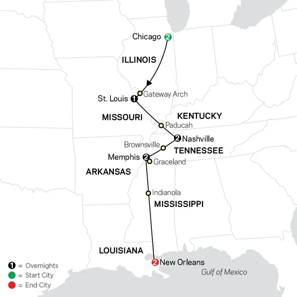 Take a musical journey through America’s Heartland featuring locations that have played a role in the evolution of American music. This fun vacation starts with two nights in the vibrant city of Chicago, then travel south via St. Louis to the capital of country music, Nashville. Take a city tour that includes seeing Centennial Park with its reproduction of the Parthenon, in the evening, enjoy reserved seating at a show at the Grand Old Opry where country music legends like Dolly Parton, Johnny Cash, and Willie Nelson have graced the stage.