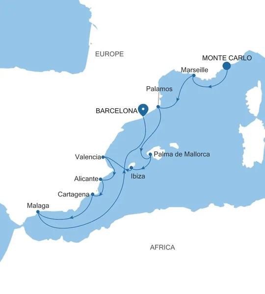 11 night voyage from Monte Carlo to Barcelona onboard Silver Ray