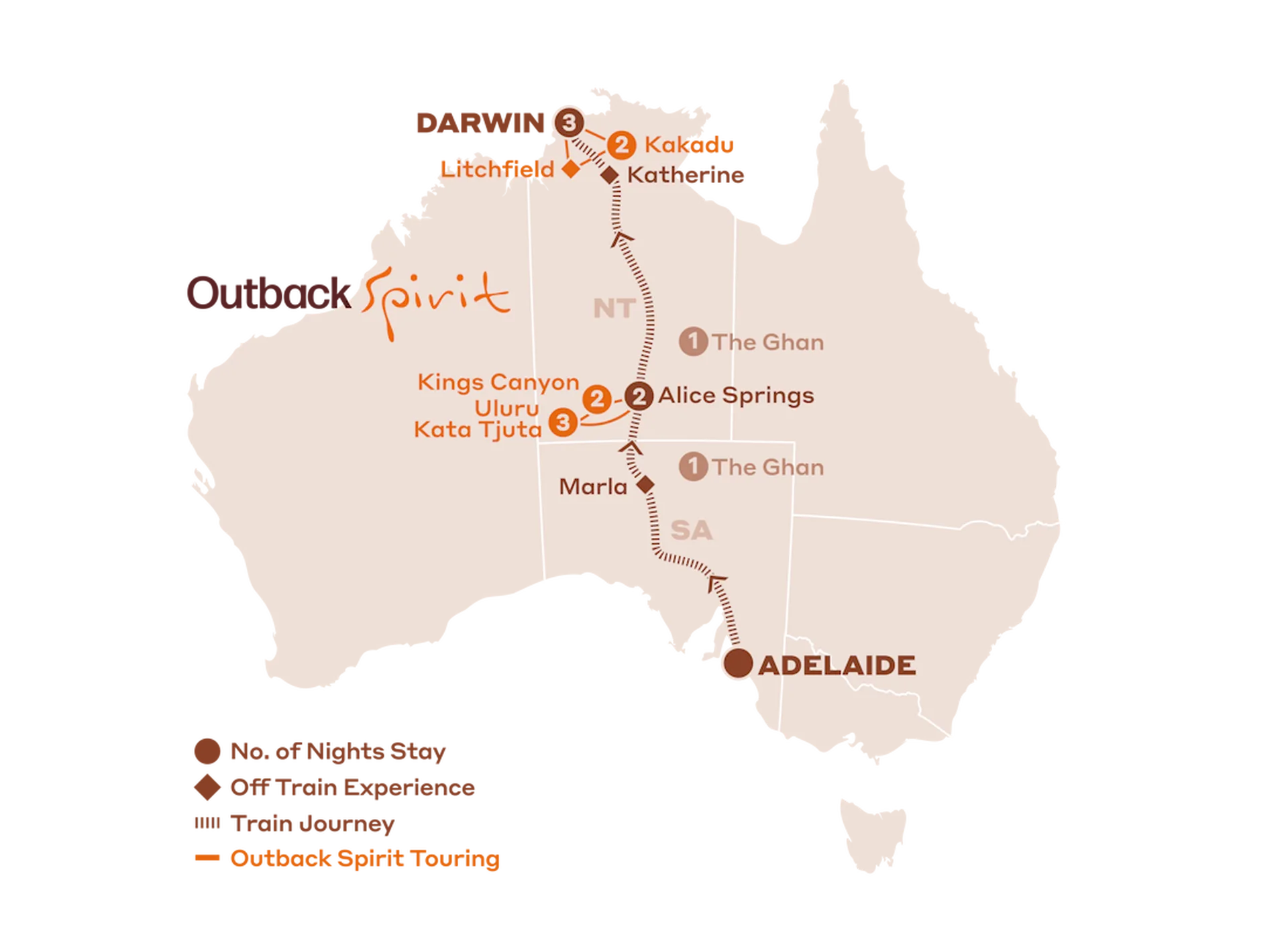 14 night journey through the Red Centre + rail journey on The Ghan Expedition + 2 nights Darwin and more!
