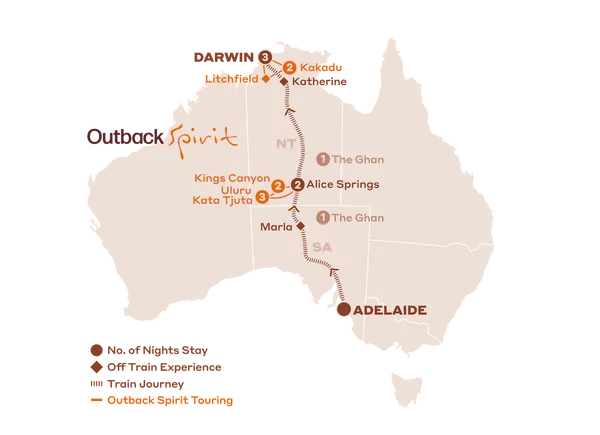 - All-inclusive dining in the Queen Adelaide Restaurant, Off Train Excursions and Outback Experiences
