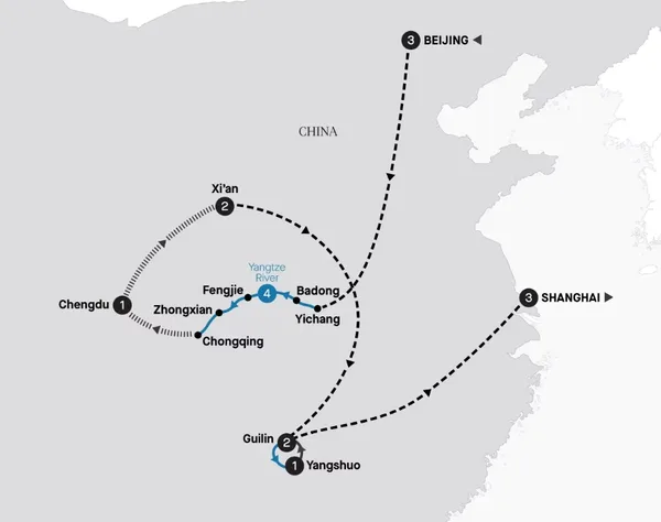 Experience the main highlights of China on this 17-day immersive journey, featuring four nights aboard the luxurious Yangzi Explorer. Visit iconic landmarks such as Shanghai's historic Old Town, the Terracotta Warriors in Xi’an, the scenic Li River, and the stunning Three Gorges. Enjoy a traditional calligraphy lesson and encounter Giant Pandas in Chengdu.