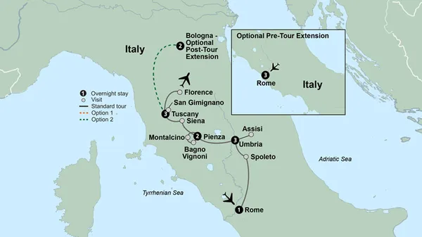 On a journey through the less-traveled country roads of Umbria and Tuscany, discover another side to the Italy you love. Stroll Assisi’s old city, and explore the Umbrian hill town of Spoleto, where the gilded façade of the cathedral rivals with the silvery sheen of the olive trees. Visit Florence, the “Cradle of the Renaissance.” In Siena, stand inside one of Tuscany’s most ancient piazzas. Admire the famous towers of San Gimignano and hunt for truffles in the Umbrian countryside. Delight in regional specialities and Italian wine with every dinner. Feel like a local as you discover the marvels of wine, cuisine, culture, and history.