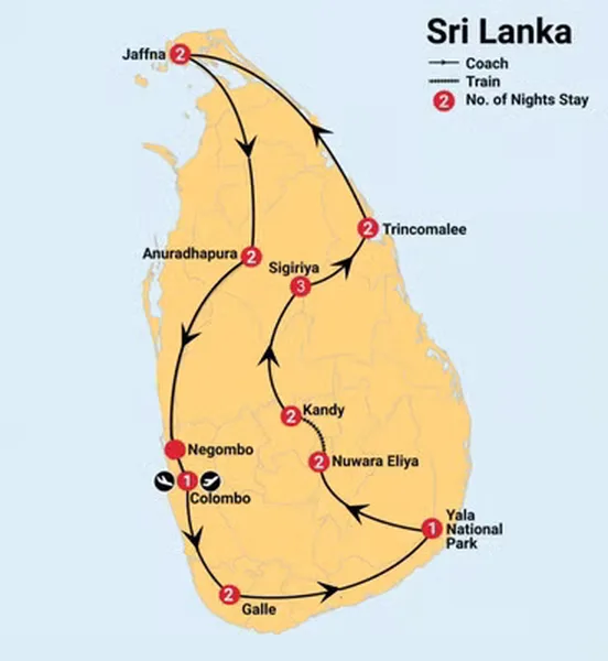 Expect a vibrant journey, from historic Galle Fort and the Sigiriya Rock Fortress, to riding the Nuwara Eliya to Kandy train and wildlife spotting in Yala and Minneriya national parks. Discover the hidden gems of historic Trincomalee and the northern city of Jaffna and Temple of Nallur Kandaswamy Kovil.