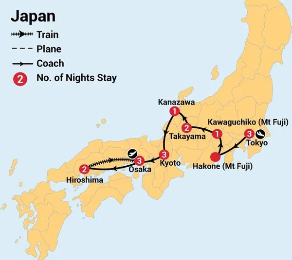 After breakfast you will leave Tokyo and head to the national park region of Hakone, with a lunch stop in Hakone-Machi on the way.