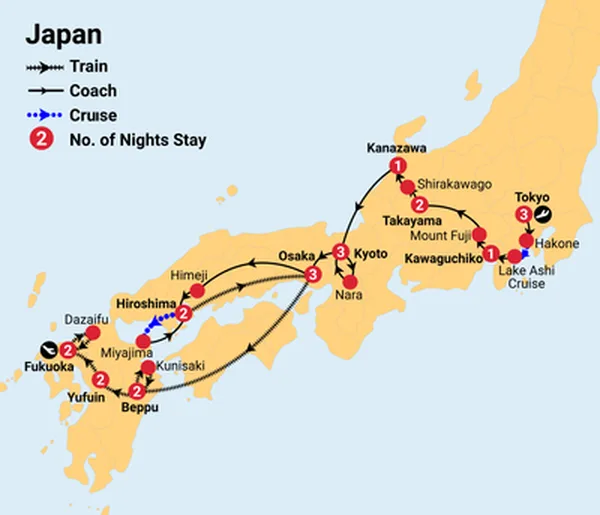 ✓ Independent travel with local guides in Kyushu (Day 16 to 22)