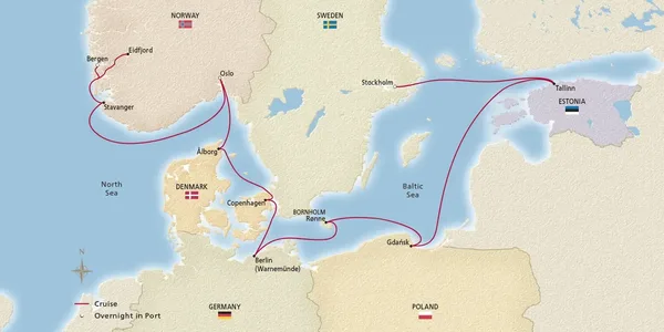 Sail the clear waters of Scandinavia and the Baltic on this 15-day voyage. Delve deeper with overnight stays in the refined capital of Stockholm, culturally rich Oslo and picturesque Bergen. Discover historic Tallinn and view the Gothic brick cathedrals in Gdańsk. Immerse yourself in Norwegian culture in Stavanger and Eidfjord and view breathtaking scenery from your ship as she glides through majestic fjords in the legendary homelands of the Vikings.