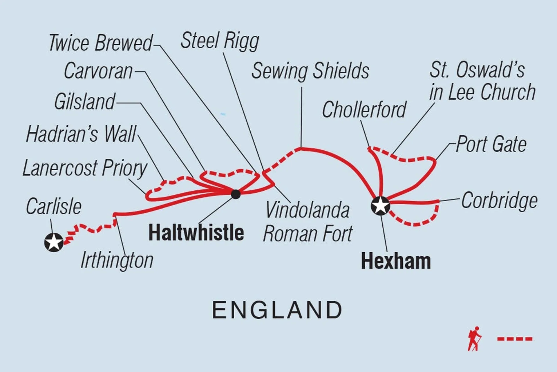 After a short transfer this morning, you’ll start the day with a visit to the splendid Roman Army Museum – with imaginative displays and 3D films, this museum provides a wealth of insight into Roman military life. Walk along one of the most spectacular stretches of the wall as it follows the craggy Whin Sill ridge. This route will involve some steep ascents and descents to reach the highest point on the wall. Head downhill for a welcome refreshment at the historic Twice Brewed Inn, where you can sample beers from their on-site brewery. After, hop on the AD122 bus for the short ride back to Haltwhistle.