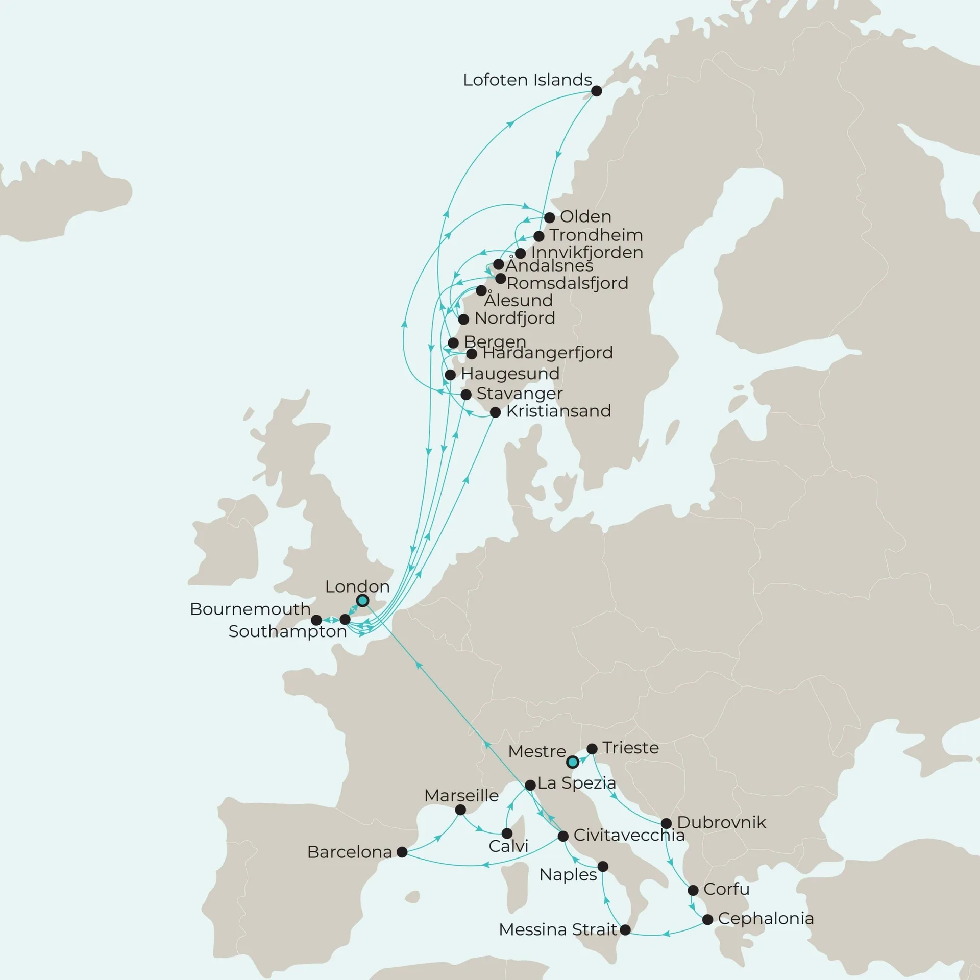 Uncover the magic of the Mediterranean first, where coffee is savoured in cobbled piazzas and sparkling shorelines exist next to renowned landmarks. Next, Norway’s dramatic fjords invite you to witness cascading waterfalls and charming villages across two unforgettable cruises. Each journey blends curated encounters with serene moments, punctuated by hand-picked hotel stays in Mestre, London, and Bournemouth